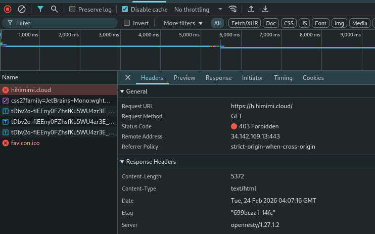 Bạn có thể thấy dù h3 đã hoạt động nhưng site vẫn trả về 403, tò mò một lúc ta có: